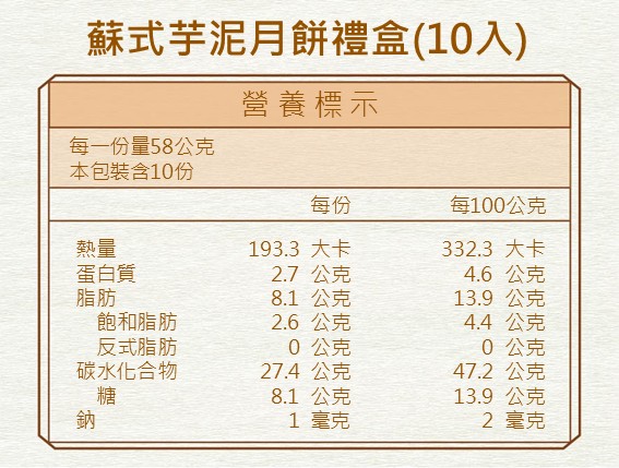 成分:麵粉、芋頭、糖、豬油、水、大豆油、紅麴色素(外觀標記用)